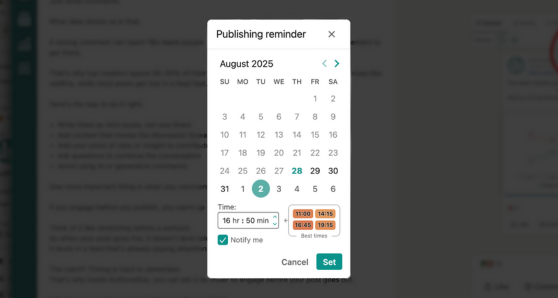 Get alerts before it’s time to post, so you can warm up the feed.