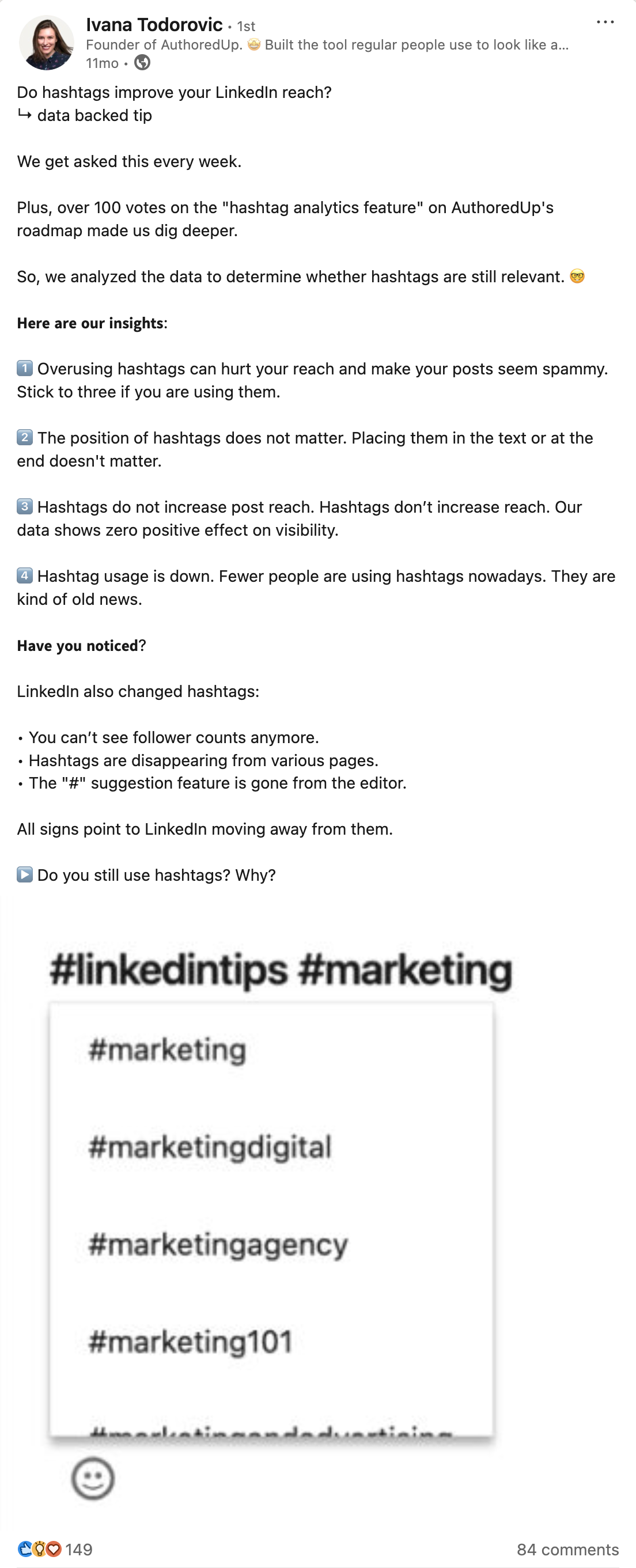 While hashtags have been essential on platforms like Instagram and Twitter, LinkedIn’s algorithm in 2024 treats them with far less priority.
